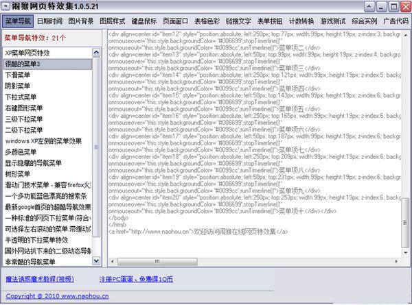 闹猴网页特效集是一款网页特效代码,脚本特效演示软件。