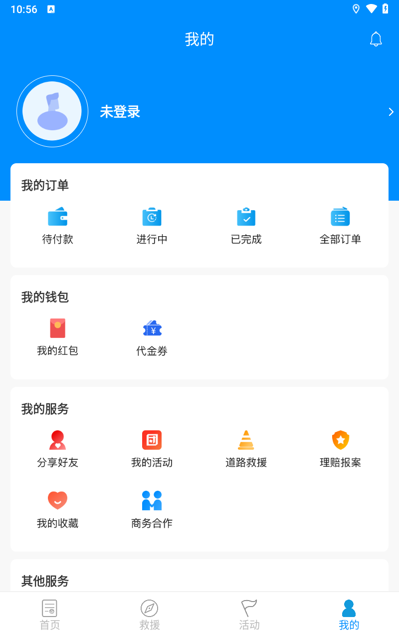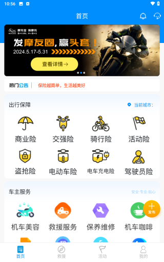 2、首页可以查看各种车险信息以及救援服务,用户可以根据需要选择购买