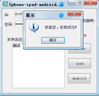 QQ空间说说模拟器 V1.0 绿色免费版 QQ空间说说模拟器是一个装b利器,他可以模拟不同的客户端发表说说,比如说Iphone-ipad-android,然后别人打开空间看到你的动态就显示对应的版本,登陆QQ空间发心情会显示,相应的来自、安卓触屏版、Iphone触屏版、Ipad触屏版、桌面版。