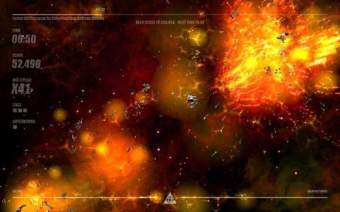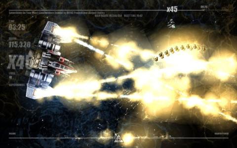 游戏难度还是比较大的,你要在这歌曲唱完还能活着呆在游戏中,但是每一首歌你都有3条命,右下角还有2枚炸弹供你使用,可以摧毁你身旁所有的敌人。在战斗过程中会掉落很多道具,例如分数增倍、射击加强等等非常丰富。每当战机被击中死亡一次会爆出各种buff道具,所以刚复活的时候记得去接道具哦。