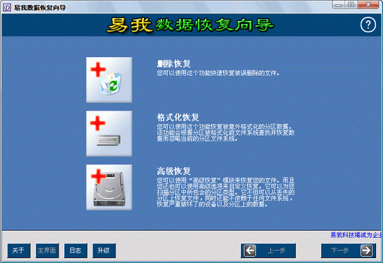 易我数据恢复向导是首款国内自主研发的数据恢复软件,是一款功能强大并且性价比非常高的数据恢复软件。提供了全面的数据恢复功能,可以恢复误格式化的文件、被误删除的文件、被误分区的文件、被Ghost误操作而丢失的硬盘数据或者分区打不开提示格式化的数据。易我数据恢复向导在WINDOWS操作系统下,提供FAT12/ FAT16/FAT32/VFAT/NTFS/NTFS5分区的数据恢复,支持IDE/ATA、SATA、SCSI、USB、IEEE1394种类的硬盘或闪盘、软盘、数码相机、数码摄像机和USB种类的存储盘。本软件具有删除恢复、格式化恢复、高级恢复等非常强大的功能,可以针对不同情况的数据丢失来进行数据恢复。本软件能非常有效的恢复被删除、格式化的文件以及分区异常导致丢失的文件.