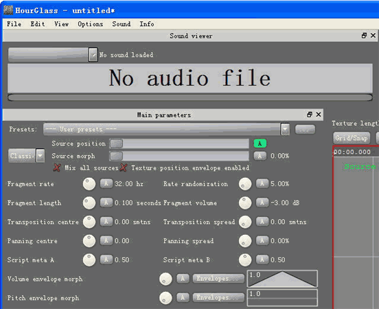 HourGlass是颗粒和纹理合成声音处理器,使您可以优化您的曲调。此应用程序也可以用作一个抽样工具,并允许用户依赖音频片段来生成纹理