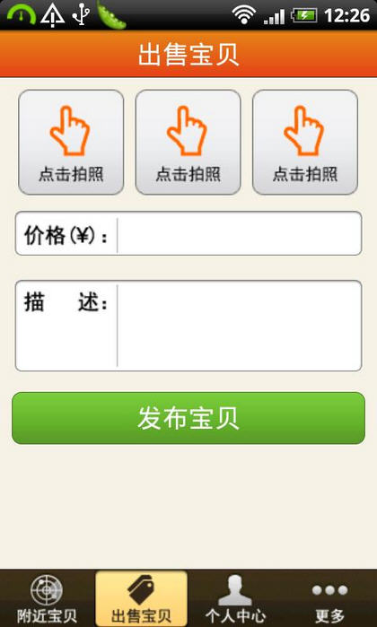 1、拍照:通过软件拍摄先拍您想卖的宝贝,三张多角度拍摄更易于买家了解您的宝贝。