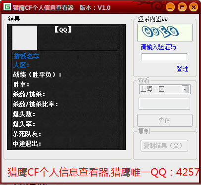 猎鹰CF个人信息查看器是一个非常不错的cf辅助工具,一键查看个人信息,需要的玩家赶紧下载使用吧!