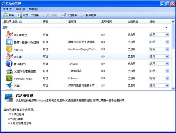 启动项管理(Suo12_StartupManager)是款开机启动项的监控和管理软件,可以快速禁用开机启动的应用,也可以添加自定义程序开机启动,如果无法确定是否可以禁用,可以查看详细信息。