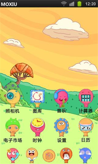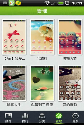 2. 运行“魔秀主题”,在桌面首页(或点击MENU键)点击“主题管家”—>进入主题“管理”界面—>选择相应主题完成应用。