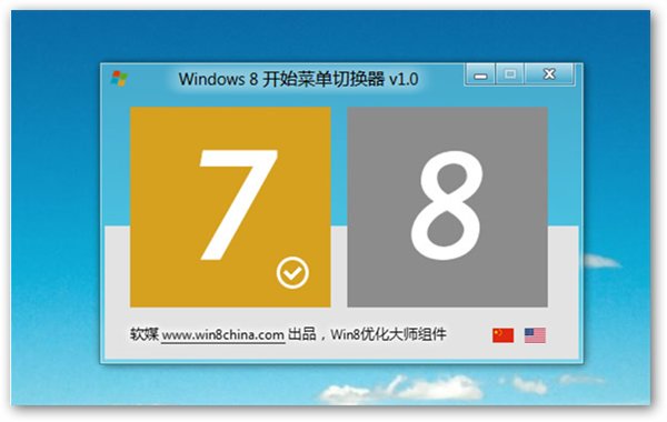 WinStart是一款win8开始菜单软件。软件运行后,默认是中文,点击美国国旗可以切换到英文版界面。