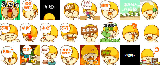 小八QQ表情是一只长着吸盘嘴的章鱼表情,戴着黄色的小帽,细胳膊细腿,时而搞怪,时而调皮,表情很欢乐,欢迎下载!