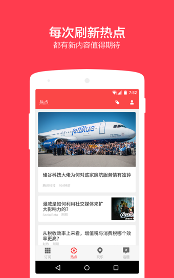 看看ZAKER可订阅的内容源吧,精心挑选的新闻资讯、微博、博客、报纸、杂志、美图、RSS、团购、Google Reader都集中到这一个小小的手机里了。分类齐全,实时更新,自由添加。您想看的,都在这里。