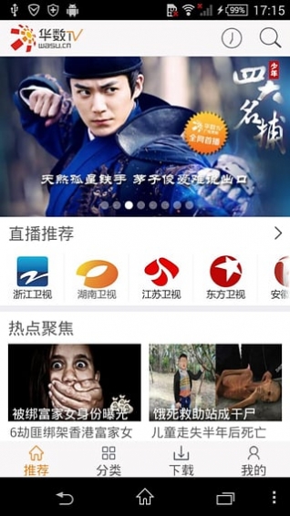 *精彩直播:华数TV手机电视是国内拥有直播最多最全的手机客户端,拥有中央台、卫视台以及私家频道等42路直播。囊括各大体育赛事、热播影视剧、热门综艺以及最新新闻资讯。