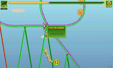 游戏使用重力感应进行操作,向不同的方向倾斜手机可控制过山车的速度和倾斜角度,疯狂过山车之99弯中提供了三种不同性能的过山车,不过需要随着游戏的进行逐渐解锁。在行驶过程中不仅要一直高速冲刺,还要多多收集轨道上出现的各种道具,将屏幕上方代表乘客满意度的绿槽填满,每关过后系统都会给出评价,根据评价给予玩家不同的奖励,想要全部集齐也不是那么容易的哦!