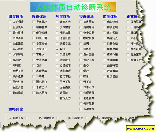 每个人的体质都不一样,体质不正常,会导致各种疾病,该软件能帮助我们简单判断自己的体质状况,可提供调理方案。(注:随意注册即可。)