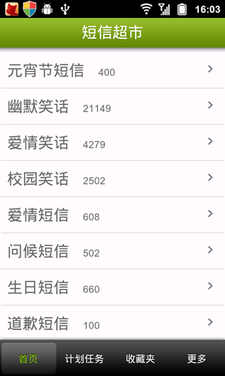 短信超市是一款免费的短信辅助增强工具,系统拥有海量优质节日短信,定时、群发、单发,微博结合的发送方式,让您发送短信不再那么麻烦,只要定好任务,系统会自动帮你做到全自动化发送,单人定时,多人定时,统统可以,只要拥有了短信超市,让您的生活一劳永逸,真正做到了简单,好用。让您可以专心做其他更重要的事情,还可以发微博哟,新浪、人人、腾讯统统支持哟,赶快拥有吧,不要把包月短信留给运营商了,群发联络朋友吧,让你的人气迅速提升吧!美女帅哥需要你的关心哟!赶快行动吧!【更新日志】