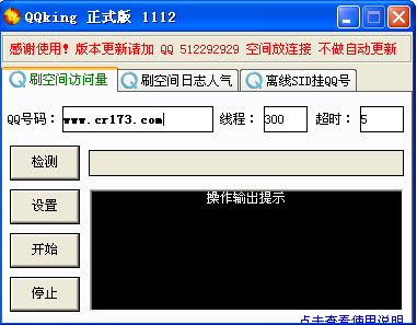 增加刷日志评论未登陆小号、为输入日志ID和QQ号码提示信息输出!添加秒循环刷日志评论、开始停止按钮和信息输出