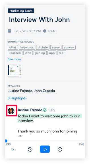 你能够修改扬声器的名称,点击人员图标来修改姓名,针对Otter用户,还能够链接用户。