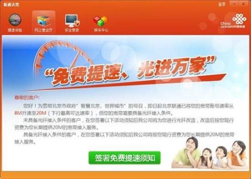 面向北京联通后付费ADSL用户,提供每月72小时提速体验服务。最高可提速至20M。