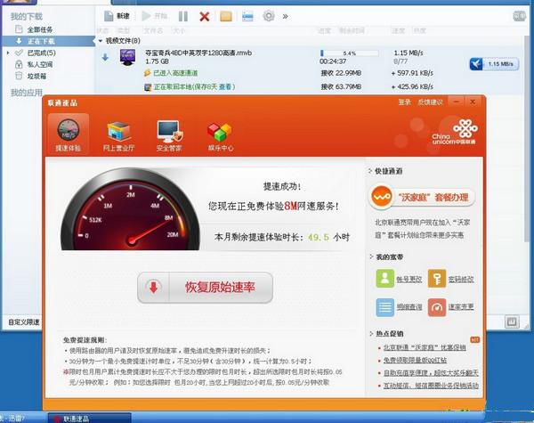 3、开通联通宽带应用联盟,专享迅雷、百度云、优酷等会员服务。