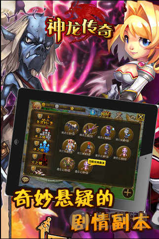 神龙传奇是一款安卓回合制RPG网游。华丽的角色形象以及古典的场景设计等优点,同时针对移动终端做了界面表现及操作方式上的优化设计。神并且在原作的基础上向智能移动终端平台的移植,吸收了原作华丽的角色形象以及古典的场景设计等优点,保留了原作中对于善恶美丑价值观的设计。同时针对移动终端做了界面表现及操作方式上的优化设计。华丽的战斗动画,脱俗的游戏设定,为本游戏的最大亮点。【游戏特点】