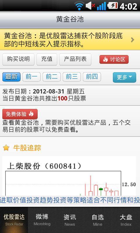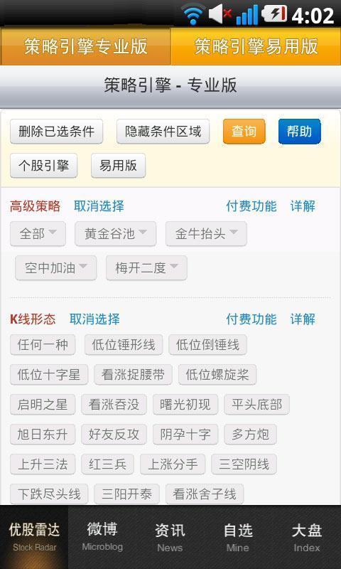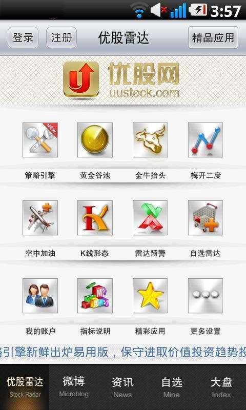 自选:可从雷达和搜股里加入自己关注的股票,随时关注行情,涨跌预警。雷达:每日最值得买入股票排行,每支股票标注排行红星来源。
