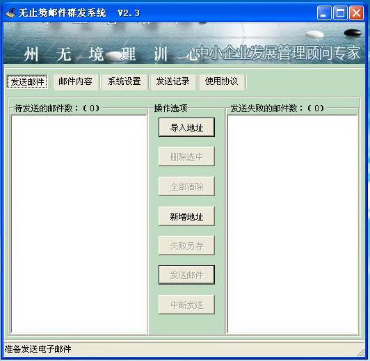 《无止境邮件群发软件》是基于SMTP服务,一对一传递Email的软件。使用Outlook或者Web网页方式同时给多人发送邮件,收件人地址栏会将所有收件人的Email地址都显示出来,发出的邮件既容易进垃圾邮件,还会将其他人的Email地址都显示给别人。无止境邮件群发软件的特点在于,对于同时发给多个收件人的Email,它是逐个投递的,这样收件人看到的Email也只是发给他自己的。无止境邮件群发软件依赖于配置好的发送邮箱去投递Email,只要你设置的发送邮箱性能足够好,投递出去的Email数量也就会足够多;如果您是中小型企业,考虑到成本控制,您可以免去购买专业的邮件服务器的成本,只需要在网站上注册免费邮件服务器,如126、163等,您就可以不花一分钱群发自己的邮件,为企业节省成本,免费宣传。
