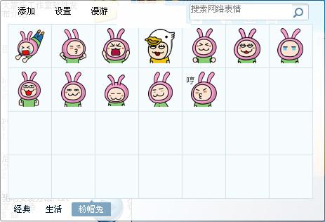 粉帽兔表情是一个戴着粉色兔毛头套的小孩表情,穿着绿色的衣服,咪咪眼,撒起娇来那是不顾形象滴,简直无敌了