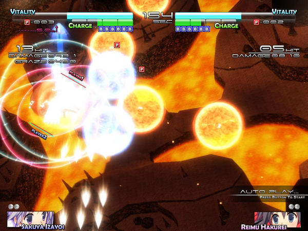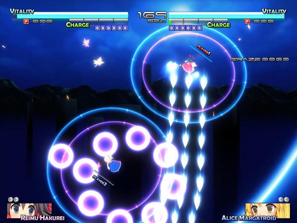 幻想的轮舞是一款日本东方同人弹幕射击游戏,游戏拥有华丽的画面,并且采用了俯看的视角。在《幻想的轮舞》中玩家可以远程发射弹幕攻击,也可以通过贴近敌方来使用武器攻击,但是因为后期弹幕的众多的原因,冒然贴近很容易被忽然出现的弹幕给淹没。