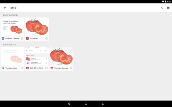 * 通过 Google 应用搜索云端硬盘中的内容,包括进行语音搜索,例如“OK Google,搜索云端硬盘中的备注”