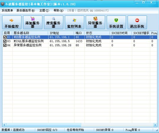 斗波服务器监控是一款完全绿色,完全本地监控,无需在服务器上安装,可同时监控多台服务器的多目标服务器监控系统,该软件安全高效完整的误报检测机制(可设定错误阀值)目前已内置WEB,SQL,FTP的模版,可直接加载使用。