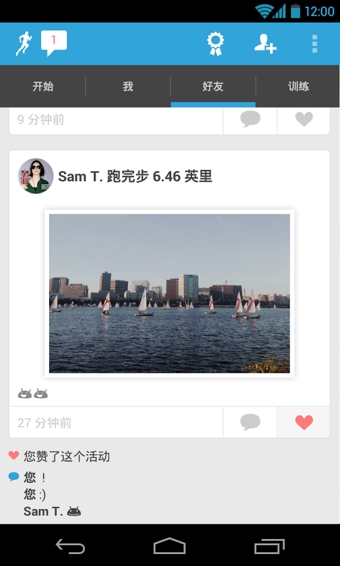 RunKeeper是顶级健身应用之一。它可以追踪你的步行(或跑步、骑自行车)距离,所用的时间以及路线。该应用还为你提供了个人化的控制面板,你可以在这里看到自己的所有历史活动,并监测自己的日常锻炼进展。此外,你还可以把信息分享到RunKeeper.com社区以及Twitter和Facebook上,让你的朋友和家人参与互动。他们的支持和助威会为你平添健身动力。RunKeeper也集成了音乐服务,可以在你锻炼时播放音乐。【软件特色】