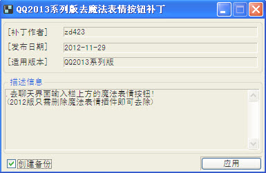 qq2013去魔法表情补丁功能: 去聊天界面输入栏上方的魔法表情按钮! (2012版只需删除魔法表情插件即可去除)