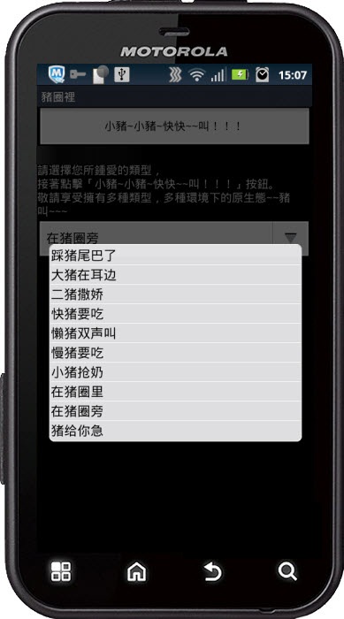 进入后,选择猪叫声,然后按下“小猪快快叫”就可以听到猪猪的嚎叫