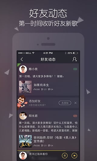 4、流畅的操作,合理的交互设计,更体现酷我以用户体验为中心的设计理念。