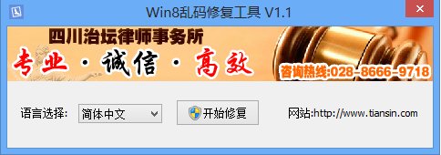 Win8乱码修复工具 V1.1免费版 Win8乱码修复器是一款在Win8系统上显示中文的时候出现乱码症状的修复软件,使用本软件后即可修复显示部份软件出现乱码的问题.