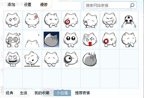 这套小白猫qq表情感觉还不错吧,圆咕咙的头,狡猾的笑容,充满渴望的眼神等等。。。这一切都会让你无法拒绝这套表情的吸引力。