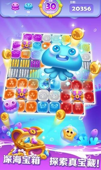 【第3关攻略】第3关要收集蓝色的章鱼了,一次打爆7个同色的泡泡会产生一颗水雷,点击水雷可以消除周围对角线长度为5的菱形区域哦,继续消除蓝色章鱼就可以通关了。