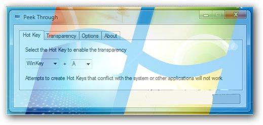 窗口半透明设置(Peek Through) 1.1 官方版 窗口半透明设置(Peek Through)用来修改windows系统下窗口的透明度,透明的程度完全由用户自定义哦!