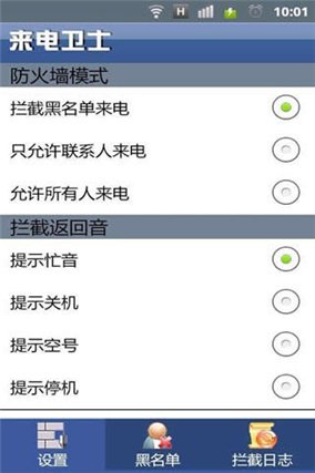 4.可自定义拦截条件,如转入静音,挂断等方式。