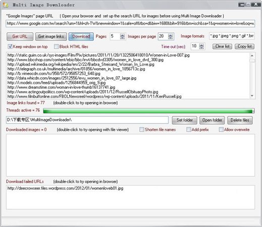 谷歌图片批量下载器是用来将google图片搜索结果中的图形文件批量下载到本地磁盘上的工具,具有速度快,稳定方便的优点。