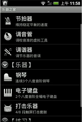 乐器工具:调音器,节拍器,调谐器。样样都是看门的法宝啊。乐器模拟:钢琴,键盘,打击乐。三种模式,其中又可选择数十种音色,齐活了。
