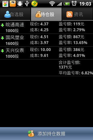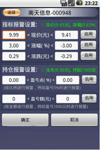 行情眼安卓版是由杰思达工作室开发,有现价、涨跌、持仓盈亏的报警,支持声音和振动提示。持仓股管理功能能让您轻松掌握股票收益情况,也可用来做模拟炒股,体验炒股乐趣。