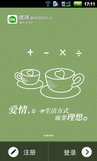 微辣团队,几个纯爷们儿,没有女生,成天想的女生用起软件来会怎么想,说着掉鸡皮疙瘩的话述。尼玛,这能行不能行啊?传说11月11日是光棍节,我们的软件上线了,难道是上天的安排?各位有主的,你们偷着乐去吧;没主的、光棍的、暗恋的、单相思的,偷偷告诉你,微辣邀请开通可以当做表白啊,要不要试试