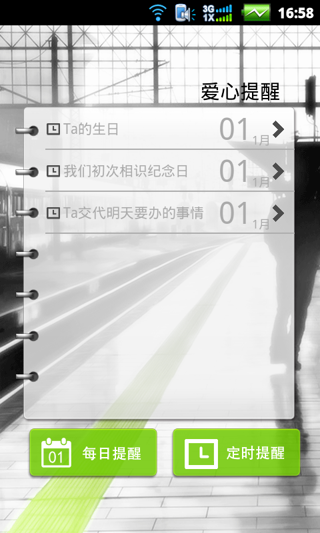- 爱心提醒功能传达彼此对另一半的关心,提醒我们最近和共同的约定。