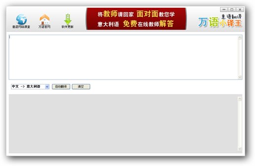 万语小译王是一款可以将中文转换为意大利语或将意大利语转换为中文的汉化翻译软件,软件非常小巧实用!是学习意大利语必备的翻译软件!