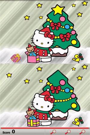 每关找到五个不同之处就胜利过关。多个关卡多幅精美Hello Kitty照片,玩游戏的同时还能欣赏Hello Kitty的精美图片,Kitty迷们一定不会错过。