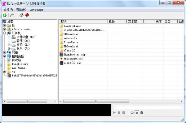 Eufony免费M4A MP3转换器 v1.01中文免费版 Eufony免费M4A MP3转换器是个功能强大的音频转换器,能把M4A转换成MP3,以及MP3转M4A。M4A是MPEG4音频标准的文件的扩展名。在MPEG4标准中提到,普通的MPEG4文件扩展名是.mp4。自从Apple开始在它的iTunes以及 iPod中使用.m4a以区别MPEG4的视频和音频文件以来,.m4a这个扩展名变得流行了。目前,几乎所有支持MPEG4音频的软件都支持.m4a。