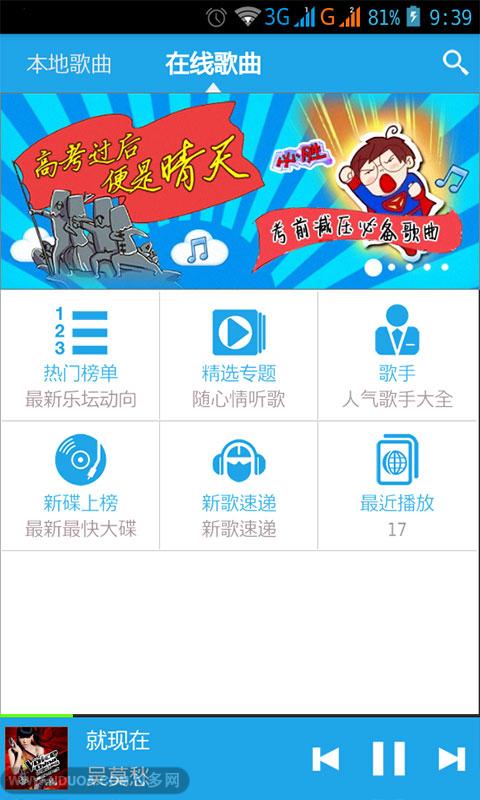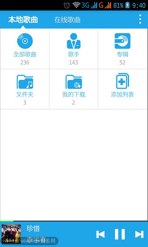 ET音乐播放器是一款集本地音乐与在线音乐于一体的播放器,一直致力于为音乐发烧友和爱好者量身打造,操作非常简单,界面十分清新,不仅如此,ET音乐播放器内外兼优,内置独有的音频解码核心和多种风格的均衡器设置,支持绝大多数主流音频格式,支持歌词和歌手图片显示,并有“摇晃手机换曲”和“耳机线控”等贴心又实用的小功能。让音乐融入生活,让聆听成为一种生活的享受。