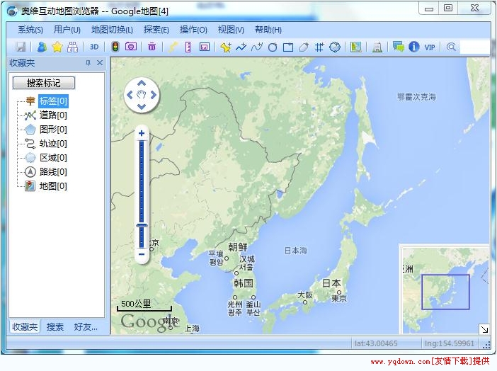 启动奥维互动地图浏览器,点击菜单栏下的五角星“收藏夹”