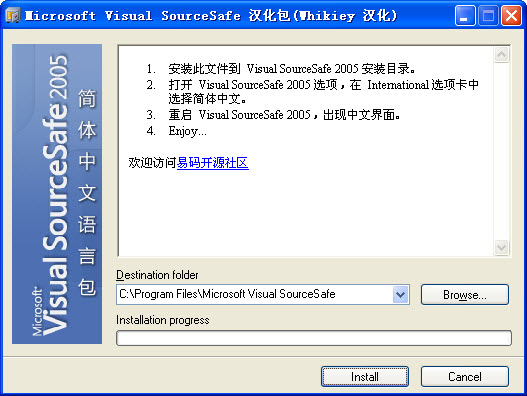 安装此文件到 Visual SourceSafe 2005 安装目录。