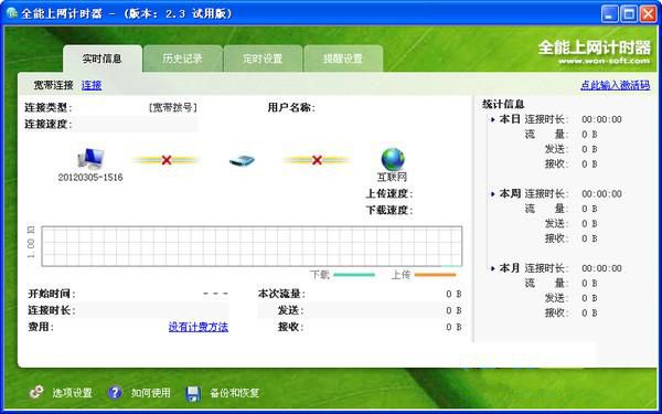 全能上网计时器 v2.41 下载 全能上网计时器是一款GPRS流量计费/时长计费软件,同时支持ADSL, LAN, ISDN及普通Modem,国内唯一完美支持EnterNet拨号, 支持限时/流量包月,时段节假日优惠等多种计费方式。