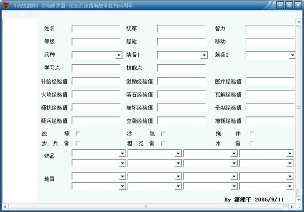 决战朝鲜人物修改器用来修改决战朝鲜游戏存档的工具。决战朝鲜修改器可以修改存档人物属性,技能,装备,战术,物品和地雷等。